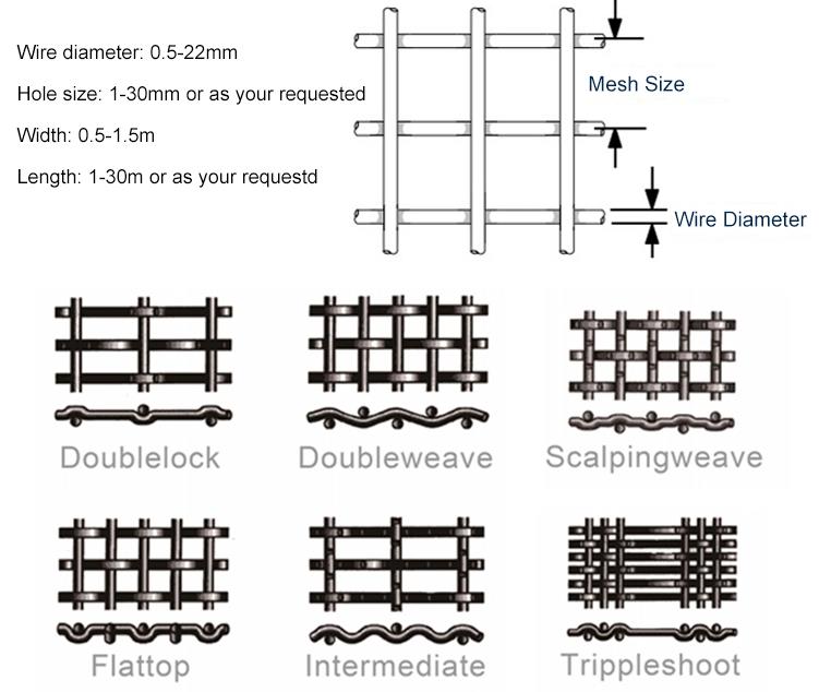 It has different weaving types and edge preparations. The main weaving types are flat top and crimped. Crimped type can be divided into single wire crimped and double wire crimped.